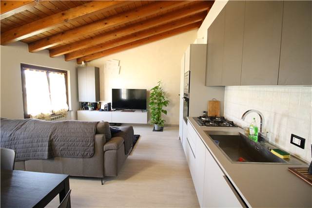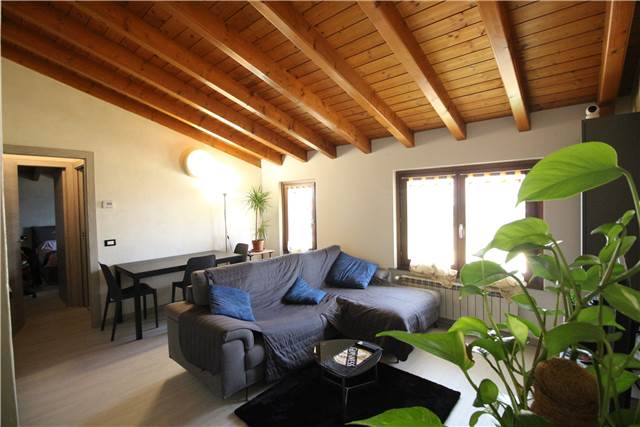 Caratteristica mansarda travi a vista con ampia cantina di pertinenza sita nel comune di Boltiere in provincia di Bergamo, in ottima posizione logistica visto la sua immediata vicinanza all'ospedale Policlinico San Marco ed al casello autostradale A4 (Capriate san Gervasio)