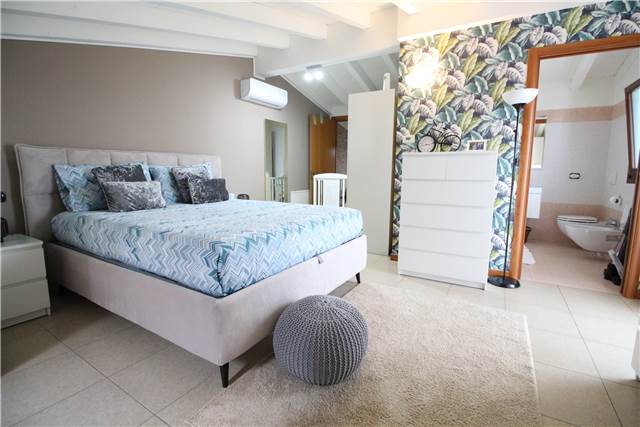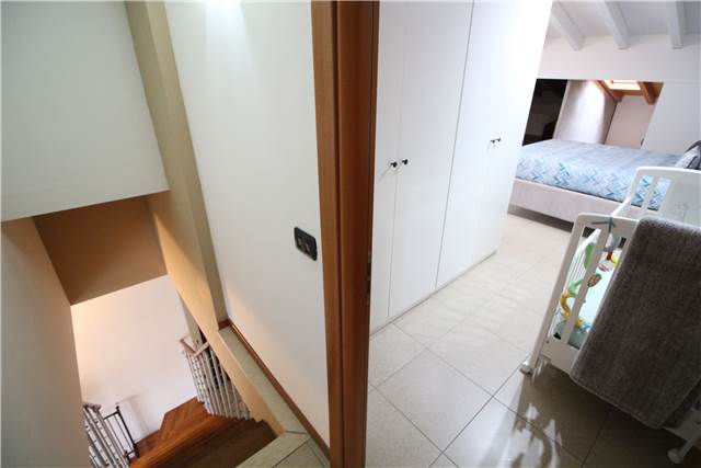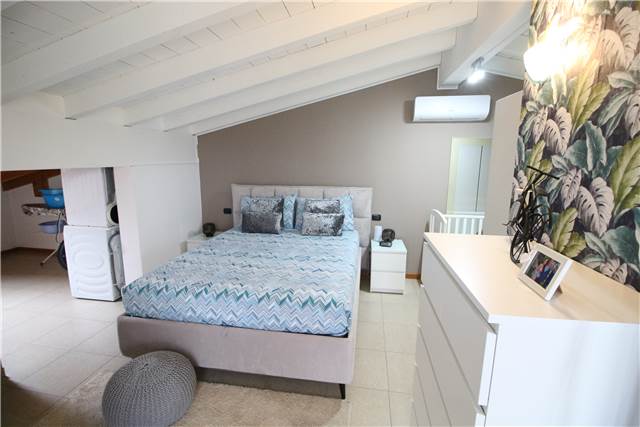 Piano secondo (sottotetto) : suggestivo locale formato da una comoda camera matrimoniale con possibilità di cabina armadio, secondo bagno privato ed affaccio diretto sul terrazzo, oltre a una cameretta arricchito dalle travi a vista sbiancate e rifinita con pavimenti in gres porcellanato.